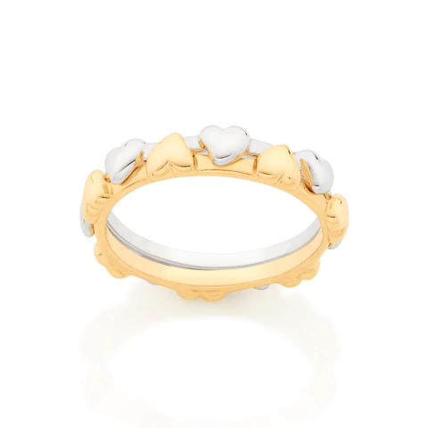Anel Duplo Com Aro Formado Por Coracoes. (Banhado A Ouro E Em Platina)