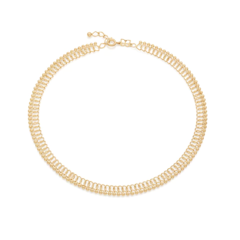 Gargantilha Choker Formada Por Fio Losango Entrelacado Com Esferas. Med 38 Cm Ajustavel 36 Cm