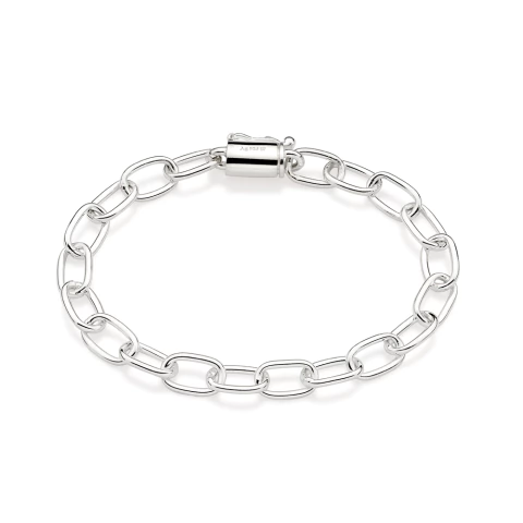 Pulseira Formada Por Corrente De Elo Cadeado Oco Formato Oval Fio 1,40 Mm.Med 18 Cm